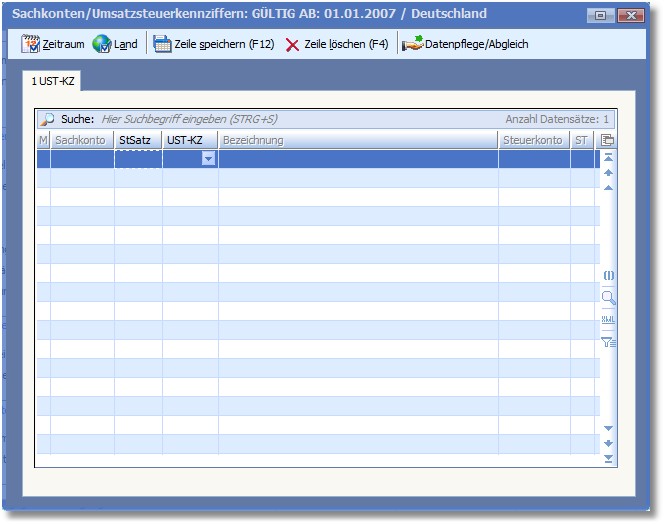 Hier können Sie mit der Funktionstaste [F5] aus der Auswahltabelle USt-Kennziffern das benötigte Umsatzsteuerkennzeichen auswählen.