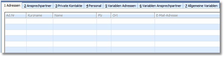 Um die Empfänger einer Serien-E-Mail zu bestimmen, können Sie aus den Adressen oder den Ansprechpartnern mehrere Adressen auswählen. Klicken Sie dazu auf die Karteikarte „Adresse" bzw. „Ansprechpartner".