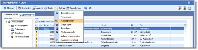 1. Klicken Sie mit der Maus im Adresstamm auf "Extras > Adressgruppen".