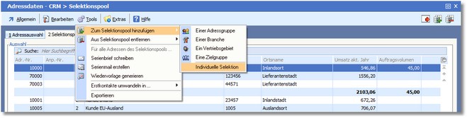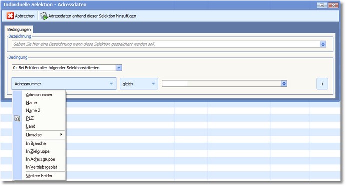 Mit der individuellen Selektion ist es möglich, komplexe Datenbankabfragen zu formulieren, um Datensätze für einen Selektionspool zu selektieren.