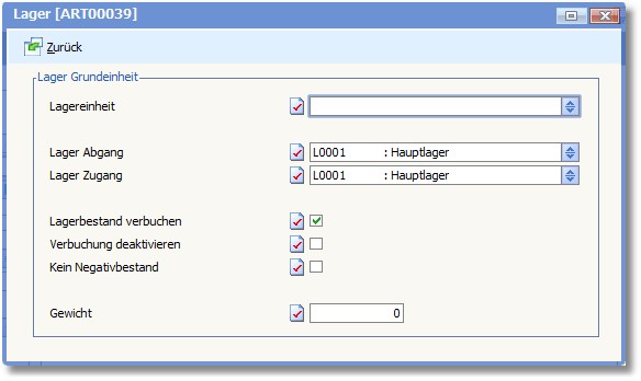 Das Programm prüft bei aktivem Status þ dieses Feldes, ob der Artikel einen positiven Lagerbestand aufweist. Ist dies nicht der Fall, wird die Erfassung abgelehnt.