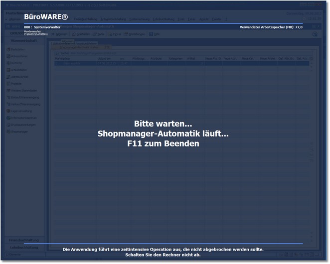 1. Drücken Sie [F9] oder klicken Sie im Menü des Shopmanagers auf "Allgemein > Shopmanager-Automatik starten".