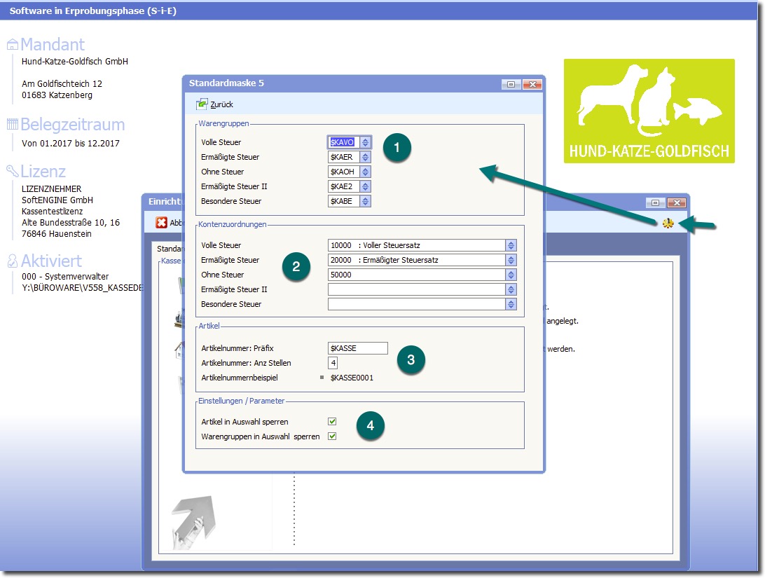 So arbeiten Sie mit dem Einrichtungsassistenten des Kassensystems: