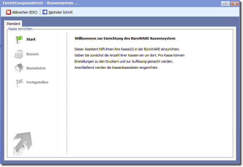 Der Einrichtungsassistent führt Sie nun durch die einzelnen Schritte der Kasseneinrichtung.