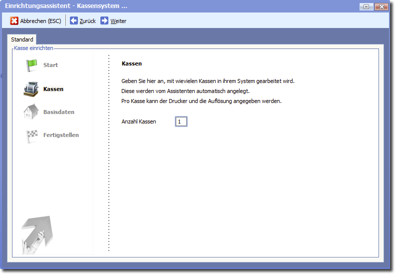 Haben Sie die Anzahl der Kassen, mit denen Sie arbeiten möchten eingetragen, klicken Sie auf <Weiter>.