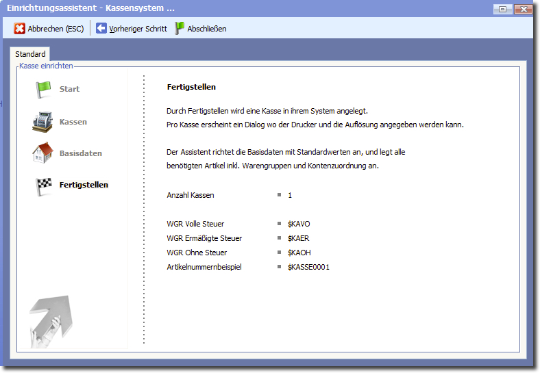 5. Um die Einrichtung der angegebenen Kasse/Kassen zu starten, klicken Sie auf <Abschließen>.