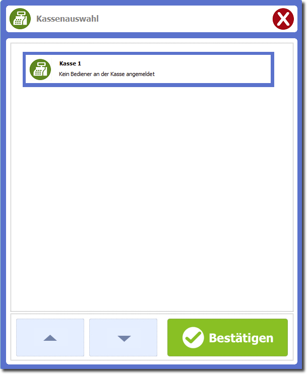 Mit [F9] oder Klick auf den Button <Vorgang starten> wird die Kasse angelegt und es wird die Auswahl der Kassen/Bediener gestartet.