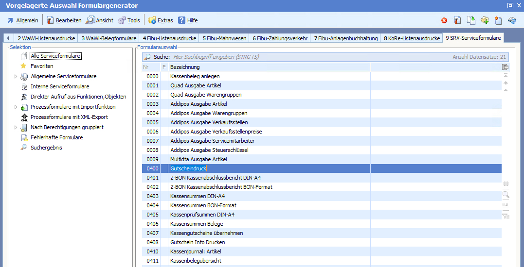 Hier können dann ein spezielles Formular und ein vom Standard abweichender Drucker festgelegt werden.