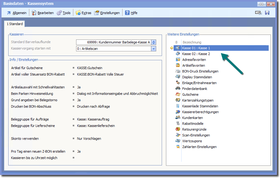 Hier ist werden die Kassenstammdaten direkt geöffnet.