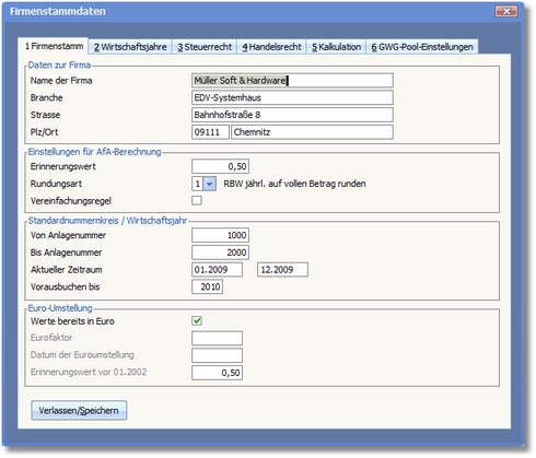 Die Karteikarte "Firmenstamm"