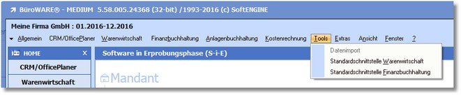 Dieser Teil des Handbuchs dient der Erläuterung der Programmfunktionen zusätzlicher Werkzeuge, die in der Ansicht "BüroWARE komplett" unter dem Menüpunkt "Tools" zu finden sind.