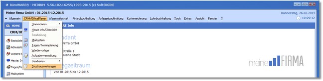 1. Klicken Sie mit der Maus im Hauptmenü auf „CRM/OfficePlaner > Druckauswertungen".