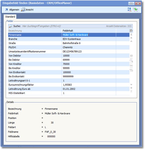 Die Basisdaten - CRM/OfficePlaner werden geöffnet.