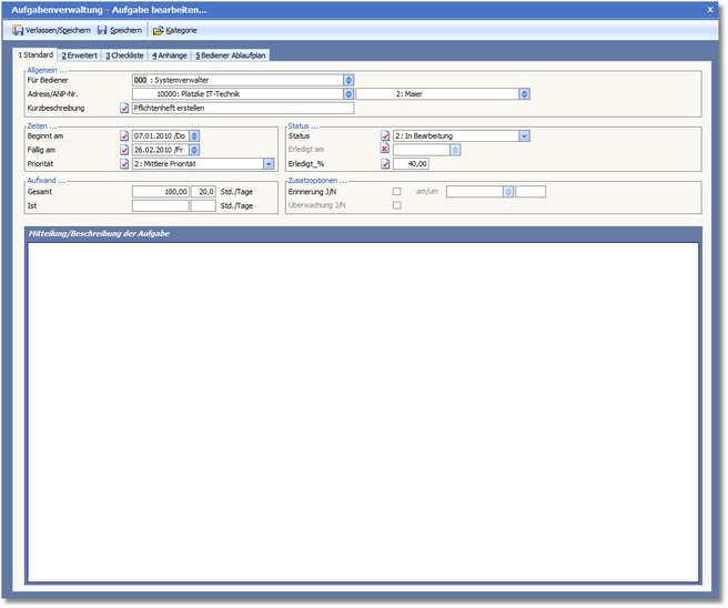 Das Programm öffnet die Dialogmaske "Aufgabenverwaltung - Aufgabe bearbeiten...".