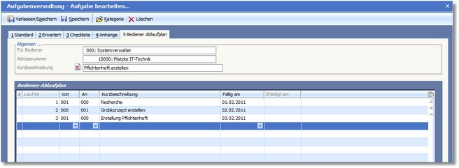 Hier kann ein Ablaufplan erstellt werden, bei dem verschiedene Bediener jeweils bestimmte Teile der Aufgabe zu erledigen haben.