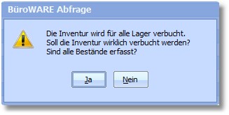 2. Wenn alle Bestände erfasst wurden, können Sie die Abfrage mit <Ja> beantworten.
