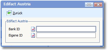 für die Durchführungen der Zahlungen im österr. Zahlungsverkehr mittels Edifact müssen BANK ID und EIGENE ID hinterlegt sein.