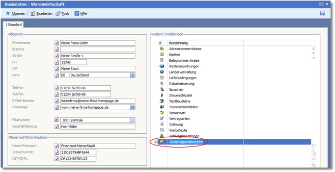 << Hier KLicken um eine Inhaltsübersicht anzuzeigen >> Navigation: Warenwirtschaft > Stammdaten > Basisdaten > Zuständigkeitsbereiche |