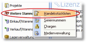 1. Klicken Sie mit der Maus im Hauptmenü auf "Warenwirtschaft > Stammdaten > Handelsstücklisten.