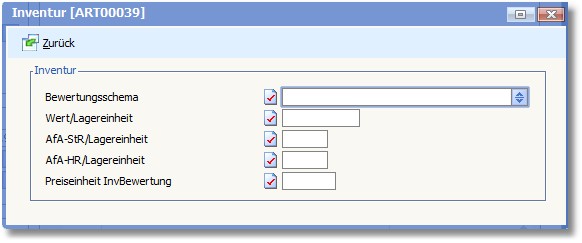 Bitte beachten Sie, wenn für den Artikel ein BEWERTUNGSSCHEMA hinterlegt ist und in der Inventur schon einmal eine Bewertung für diesen Artikel gemacht wurde, dann wird der bei dieser Bewertung errechnete Wert automatisch in dieses Feld zurück geschrieben.