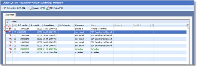 Navigation:  Warenwirtschaft > Belegbearbeitung > Verkauf/Warenausgang > Vorkasseaufträge freigeben >