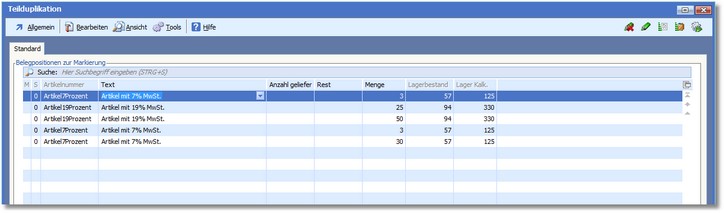 Hier wird beschrieben, wie Sie Teilduplikationen in der Positionserfassung vornehmen können.