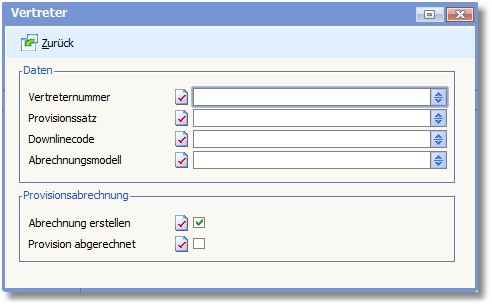 Hier können Sie für die Position abweichende Einstellungen für die Vertreterabrechnung hinterlegen:
