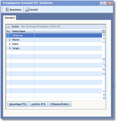 In dieser Auswahltabelle werden Verkäufer angelegt, bearbeitet und gelöscht.