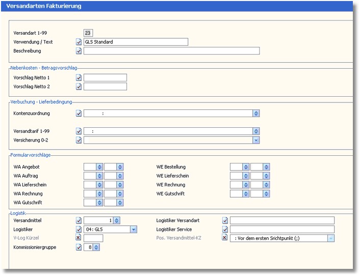 Der Bereich "GLS Versandart"