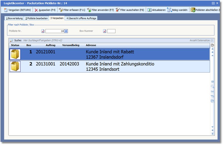 << Hier KLicken um eine Inhaltsübersicht anzuzeigen >> Navigation: Warenwirtschaft > Lagerverwaltung > Lager/Logistikcenter > Packstation > Verpacken |