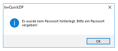 Ohne Passwort kann nicht fortgesetzt werden, ein entsprechender Hinweis wird angezeigt: