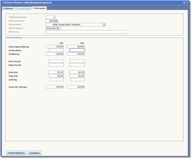 << Hier KLicken um eine Inhaltsübersicht anzuzeigen >> Navigation: Finanzbuchhaltung > Stammdaten > Basisdaten > Teilzahlungsmanagement > Arbeiten mit Teilzahlungen > Teilzahlungen vereinbaren > Die Karteikarte "Zahlungsplan" |