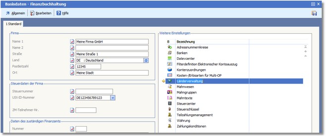 Die Basisdaten der Finanzbuchhaltung werden geöffnet.