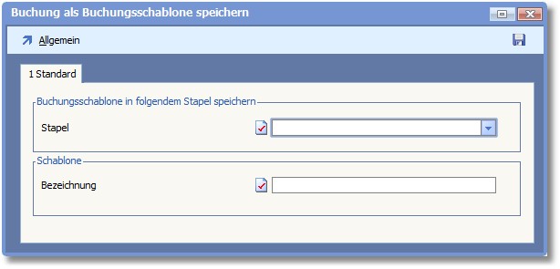 Als Buchungsschablone speichern Öffnet ein Dialogfenster, in welchem Sie die markierte Buchung als Buchungsschablone speichern können: