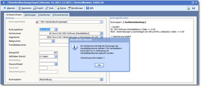 Auf diese Vorgabe werden Sie bei falschen Buchungen auch hingewiesen.