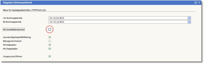 Drucken Sie nun die Handelsbilanz, indem Sie die Option "Mit Handelsbilanzkonten" aktivieren.