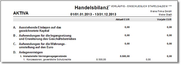 Somit wäre dann der Ausdruck der Bilanz von Periode 1-13 die Steuerbilanz und der Ausdruck der Periode 1-14 die Handelsbilanz. Diese Vorgehensweise hätte jedoch Nachteile bei den Vorträgen ins nächste Jahr. Ein automatisches Vortragen beider Bilanzen wäre in diesem Fall nicht möglich. (Personenkonten - und damit die Ops - könnten natürlich vorgetragen werden,