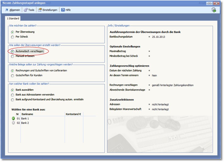 So können Sie einen automatischen Zahlungsvorschlag erstellen: