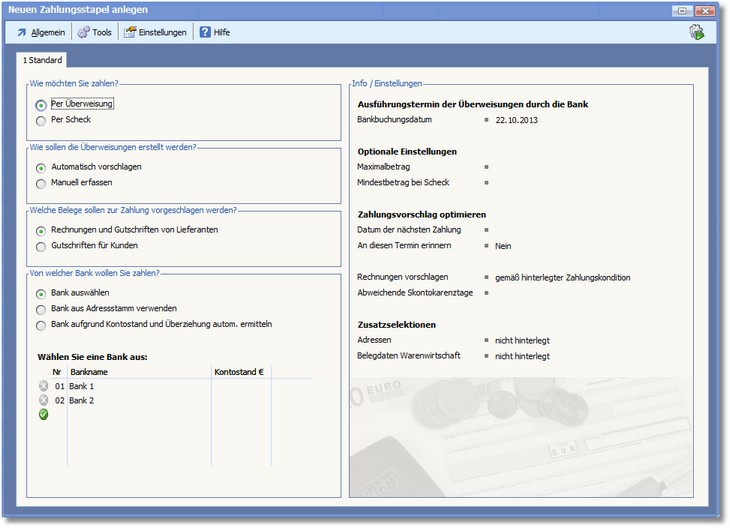 Das Programm öffnet den Dialog zum Erstellen eines neuen Zahlungsstapels.