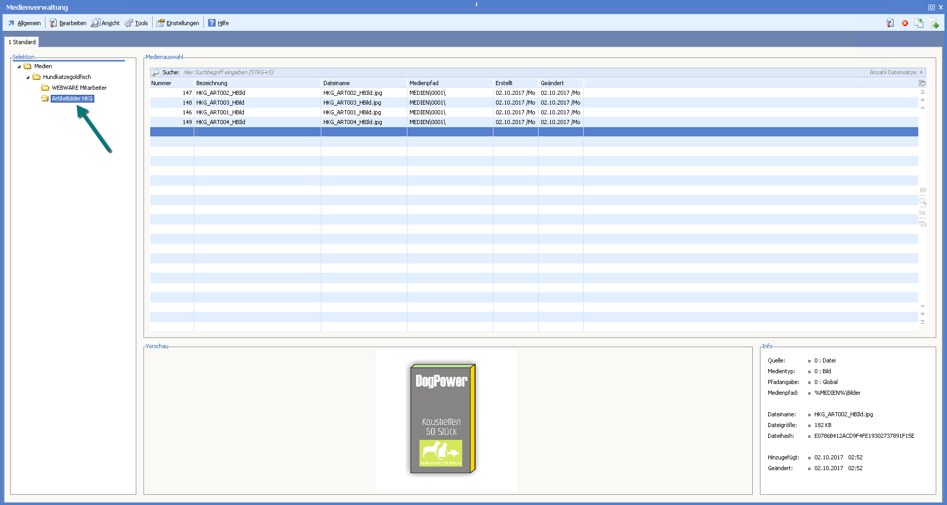 Navigation:  Warenwirtschaft > Stammdaten > Artikelstamm > Artikelstamm - Menü > Medienverwaltung >