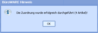 Nach Abschluss der Funktion werden Sie über die Anzahl erfolgreicher Zuordnungen informiert.