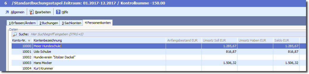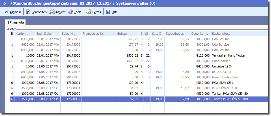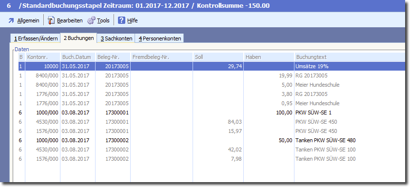 ➜ Auf der Registerkarte 2 ➜ "Buchungen". Hier finden Sie alle Buchungen des aktuellen Stapel in der Reihenfolge des Buchungsdatums.