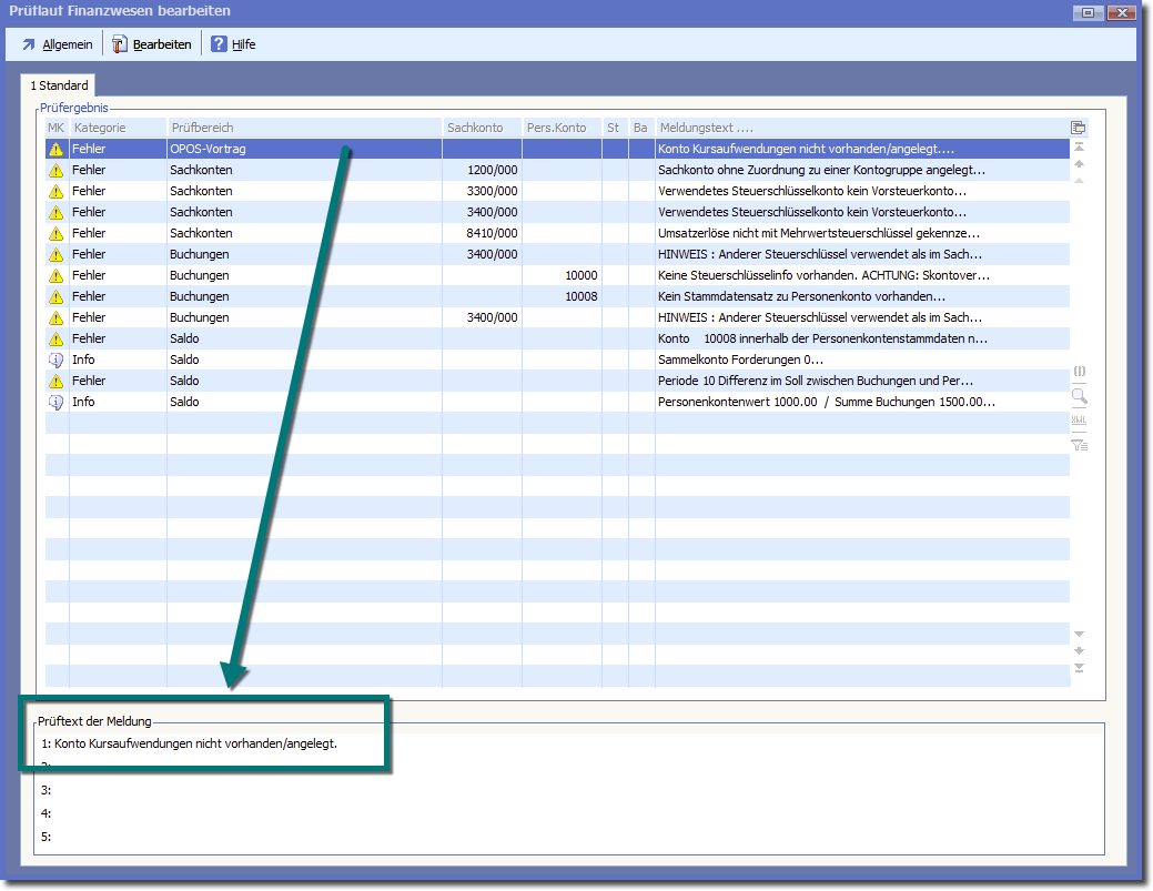 << Hier KLicken um eine Inhaltsübersicht anzuzeigen >> Navigation: Finanzbuchhaltung > Monatliche/periodische Arbeiten > Finanzbuchhaltung prüfen > Prüflauffehler und deren Bearbeitung > Fehler im Finanzbuchhaltungsprüflauf > Konto nicht vorhanden/angelegt |