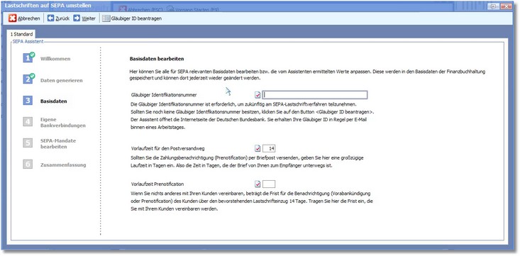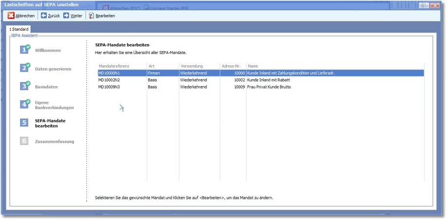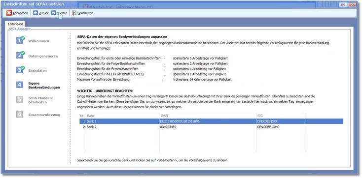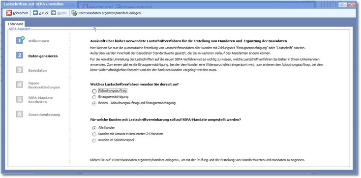 In diesem Arbeitsschritt erfolgt die Umstellung der Lastschriften auf SEPA. Folgen Sie dazu den Anweisungen des Assistenten.