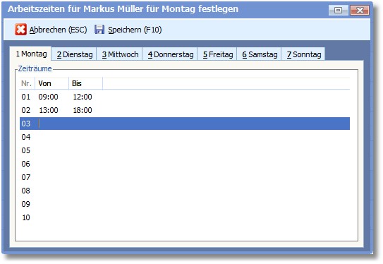 Außerdem ist die Festlegung abweichender Arbeitszeiten für jeden einzelnen Mitarbeiter möglich.