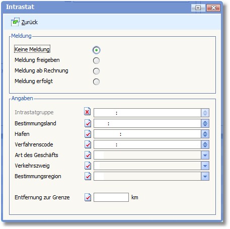 Hier können Sie die Parameter für die Intrastatmeldung hinterlegen, soweit die Ein- bzw. Ausfuhren für diese Adresse gemeldet werden müssen.