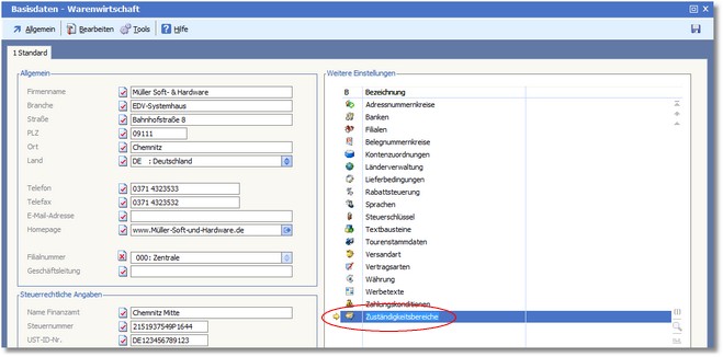 << Hier KLicken um eine Inhaltsübersicht anzuzeigen >> Navigation: Warenwirtschaft > Stammdaten > Basisdaten > Zuständigkeitsbereiche |