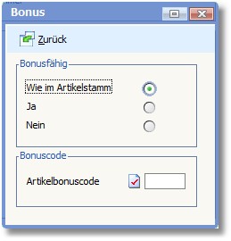 Eingetragen wird der Bonuscode. Der Bonuscode bestimmt die Konditionen der Bonusermittlung für diese Adresse.