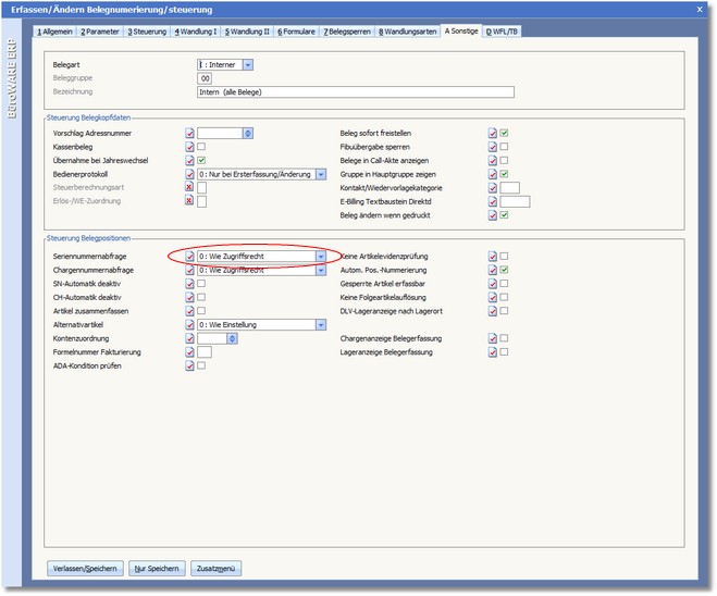 In welchen Belegen eine Seriennummernabfrage für Seriennummernartikel erfolgen soll, können Sie innerhalb der Beleggruppen einstellen.