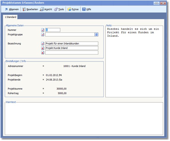 Navigation:  Warenwirtschaft > Stammdaten > Projekte > Projekte anlegen und ändern >